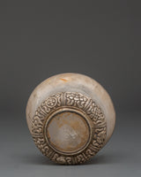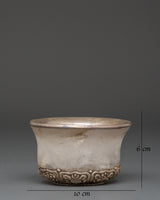Enhance your spiritual practice with this handcrafted Tibetan Silver Offering Bowl, an exquisite piece that represents the rich tradition of Himalayan artisans. This magnificent sculpture, made from 92.5% pure silver and copper, radiates timeless beauty and enhances any meditation or ritual setting. It measures 6 cm in height and 10 cm in breadth, and weighs 0.48 kg, representing strength and foundation throughout spiritual activities.
