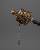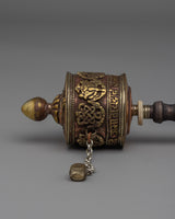 The 25 cm Handheld Prayer Wheel is a masterfully constructed spiritual tool made of brass and copper that is both elegant and long-lasting. This prayer wheel, which stands 25 cm tall, has a solid design that showcases old-world artistry and meticulous attention to detail. The copper and brass components give the wheel a deep, glossy sheen that amplifies its visual allure and elevates it above other spiritual aids.
