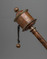 Elegant Copper & Wood Buddhist Prayer Wheel for Spiritual Power