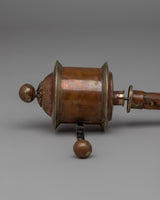 Elegant Copper & Wood Buddhist Prayer Wheel | Enhance Your Meditation Practice