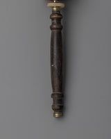 The wooden handle is easy to use during meditation or prayer and offers a pleasant grip for effortless spinning. The prayer wheel is a valuable spiritual tool as well as a lovely ornamental piece because of its clever design, which combines practicality with aesthetic appeal. This one-of-a-kind, finely crafted sculpture elevates any meditation area or altar with its hand-carved metallic body and wooden handle, making it a significant object for individual devotion and spiritual practice.