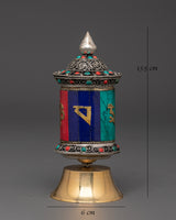 Handcrafted Tibetan Mantra Wheel on Brass Stand | Handcrafted Buddhist Spiritual Decor
