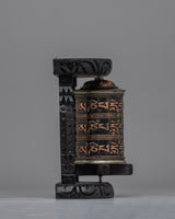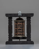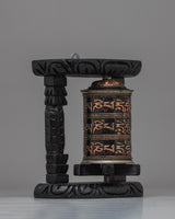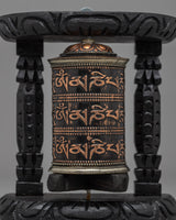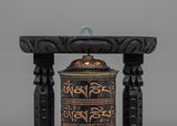 Handcrafted Tabletop Tibetan Prayer Wheel | Copper Body & Wooden Frame