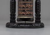 This prayer wheel combines symbolic beauty with functionality, making it an essential component of any altar or sacred area. The shaded wood frame with blossom and flame designs symbolizes purity and the elimination of ignorance. Spinning the wheel round is equivalent to chanting the mantra, which is thought to promote compassion, mindfulness, and spiritual progress. Its small size and precise design make it excellent for intimate meditation, acting as both a devotional tool and a lovely piece of Buddhist spiritual décor.