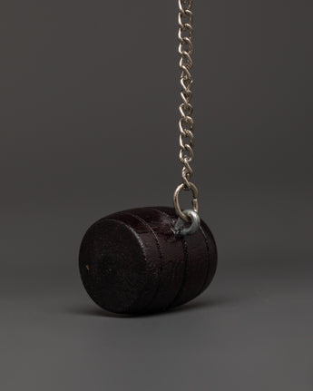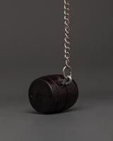 This handcrafted wooden prayer wheel is 28cm tall and 7cm broad, made of wood with a mantra inscription. The "Om Mani Padme Hum" chant arcs around the wheel, emphasizing its holiness. A weighted striker paired to a chain facilitates its smooth rotation, making it suitable for use in personal or group meditation.