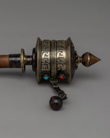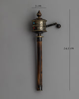 Handheld Copper & Wood Buddhist Prayer Wheel