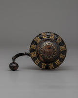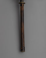 Its spiritual force is enhanced by the warm, grounding contrast of the wooden shaft and the magnificent copper body, which is decorated with meticulous craftsmanship. With each turn, the prayer wheel's gentle rotation magnifies the sacred mantras inside, channeling positive vibrations and cleansing bad energy. It is a tool for introspection, enlightenment, and the development of calm and is perfect for regular meditation sessions. This prayer wheel, which is the ideal size for a personal altar or spiritual area, symbolizes the Buddha's compassion and wisdom and serves as both a practical meditation tool and a lovely piece of Buddhist décor.