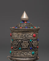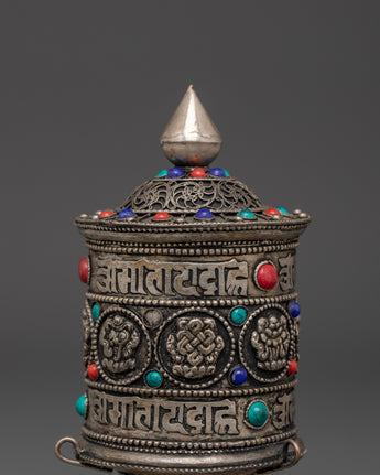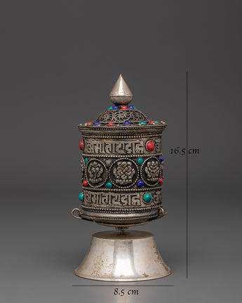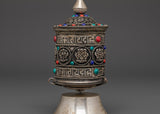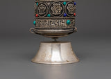 Handmade Tibetan Prayer Wheel | Coral and Turquoise Inlaid