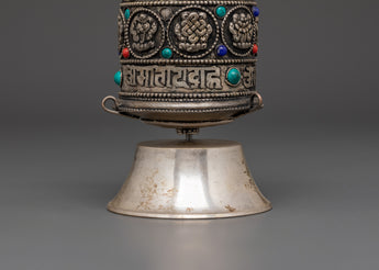 The prayer wheel is a vital component of the Tibetan Buddhist tradition, designed to promote peace, cultivate good karma, and foster spiritual growth. The beautiful design, along with the relaxing rhythmic spin of the wheel, creates a sense of serenity and meditation. Whether used in rituals, as a spiritual gift, or as a striking piece of decor, this prayer wheel adds a sense of calm and cultural richness to any space.