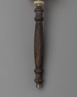 Featuring a comfortable wooden handle, this prayer wheel offers both functionality and ease of use. The handle ensures a secure grip, allowing for smooth and effortless rotation during meditation or prayer. This combination of copper and wood not only makes the prayer wheel a practical tool for spiritual practice but also a beautiful, decorative piece that brings a sense of tranquility and tradition to any space.