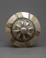 The prayer wheel's white metal body exudes timeless elegance and a sacred aura thanks to its meticulous craftsmanship. May the mantras inscribed on the wheel resonate deeply within you, invoking peace, serenity, and spiritual enlightenment.
