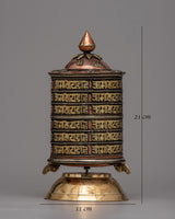 The Nepal Spinning Prayer Wheel is a highly regarded representation of spirituality and devotion that is carefully made by hand out of copper to represent age-old customs. Its height of 21 cm makes it a sight to behold with respect and awe. When a mantra is carefully engraved on the wheel, every turn turns into a holy ritual that fills the space with blessings and good vibes.