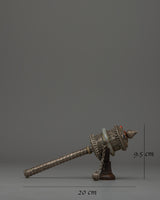 Introducing the Prayer Wheel Spinner, a painstakingly crafted object that perfectly captures the magnificent artistry and profound spiritual legacy of Tibetan handicraft. This prayer wheel is enhanced by the addition of jade, which adds a touch of elegance and spiritual importance. Its fine copper body and silver plating finish it well. With dimensions of 9.5 cm in height by 20 cm in breadth and a weight of 0.225 kg, this spinner is a wonderful addition to any spiritual practice or collection. Its design combines functionality with visual appeal.