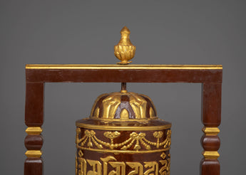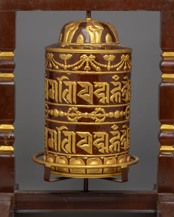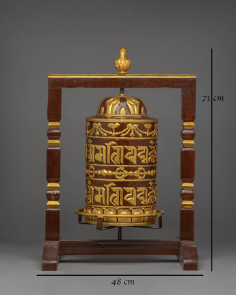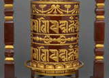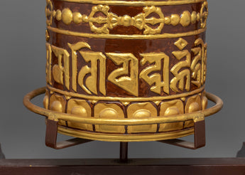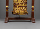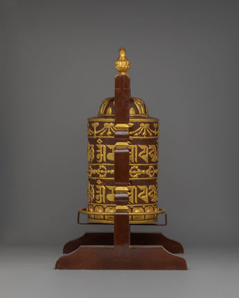 Tibetan Prayer Wheel | Ritual Item with Copper Body and Handcrafted Wooden Stand