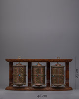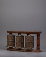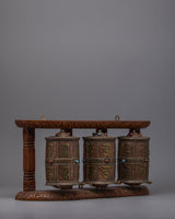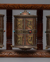 3-in-1 Buddhist Prayer Wheels with Wooden Wall Mount