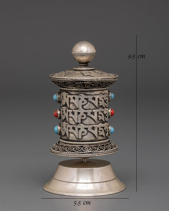 The combination of brass, turquoise, and coral adds both beauty and significance to this ritual object. The turquoise is often associated with healing and protection, while the coral symbolizes vitality and life energy. When incorporated into your spiritual practices, this prayer wheel helps to invite peace, prosperity, and protection, making it an essential addition to your Buddhist ritual tools.