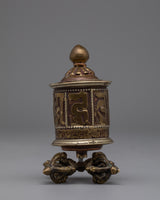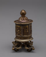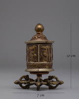 Perfect for collectors, art fans, and spiritual practitioners, the Tibetan Praying Wheel is a beautiful decorative item in addition to a practical spiritual tool. This praying wheel inspires thoughtfulness and respect whether it is positioned in a meditation area, on a holy altar, or as a classy accent in any interior. With its artistic beauty and spiritual symbolism, it enhances any surroundings and is a treasured addition to any collection or sacred space. This praying wheel is a significant item that represents fine craftsmanship and profound spiritual principles, as well as a pretty decoration.