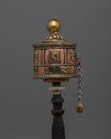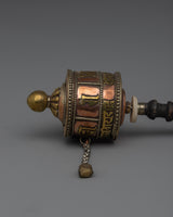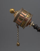 Tibetan Wood Handle Prayer Wheel | Hand-Made Meditation Accessory with Traditional Spiritual Significance