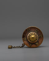 This prayer wheel, which stands 21.5 cm tall, has a well-thought-out wooden handle that guarantees a secure grasp and easy use. Its wood construction enhances the handle's inherent elegance, harmonizing with the copper body. The prayer wheel embodies tradition and artistry, and its combination of materials and craftsmanship makes it a lovely addition to any altar or meditation space and a valuable tool for spiritual practice.