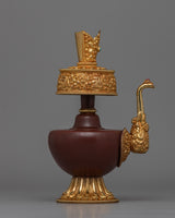 Inlays of turquoise, a stone valued for its healing and protecting qualities, accentuate the elaborate craftsmanship. In addition to adding visual appeal, this rich material combination gives the set deep symbolic significance. The Bhumba, a traditional Buddhist ceremonial object, is a necessary component of any sacred area since it symbolizes purification and the sacredness of water offerings. This Bhumba Set combines creativity and practicality, making it ideal for altars, meditation spaces, or ceremonial use. It is a profound spiritual instrument and a declaration of dedication. This gold-plated Bhumba Set exudes beauty, elegance, and spirituality, making it a perfect choice for individual practice or as a considerate present for a practitioner.