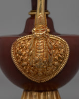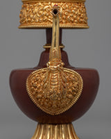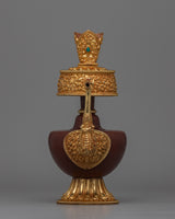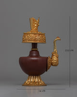 Elevate your spiritual practice with this wonderful Buddhist Bhumba set for rituals, a work of art and devotion. This sacred vessel is handcrafted from oxidized copper and delicately gold-plated, expressing eternal beauty and spiritual importance. This set, which measures 23.5 cm in height and 14 cm in width and weighs 1.392 kg (0.702 kg for the single component), is intended to evoke reverence and awe.