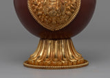 The Bhumba, or Ritual Vase, is an important ceremonial item used for holding holy water that has been blessed by the Guru. These are called the “chief” or “principal” vase, and the “action” or “working” vase. The principal vase is filled with holy water and remains upon the altar in the monastery or temple, while the action vase is used for the actual pouring of water for purification during the various stages of the ritual.