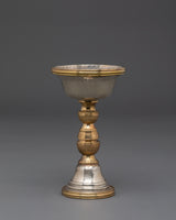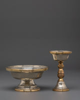 Handcrafted Buddhist Altar Serkyem Set | White Metal and Copper Ritual Offering Vessel
