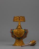 Buddhist Bhumba Set – Handcrafted Copper Ritual Vase with Stone and Electroplating