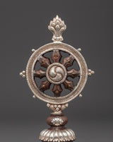 Oxidized Copper Dharma Wheel for Altar | Tibetan Buddhist Symbol