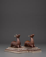 The Deer represents harmony, happiness, peace, and longevity in Buddhism. When a male and female Deer are shown together, it is a clear connection to Buddha's initial teachings near Varanasi. Buddha was a golden deer who communicated to men in one of his previous lifetimes. According to that tradition, deer are naturally modest and peaceful animals, and their presence in a location indicates the purity of a brave kingdom.