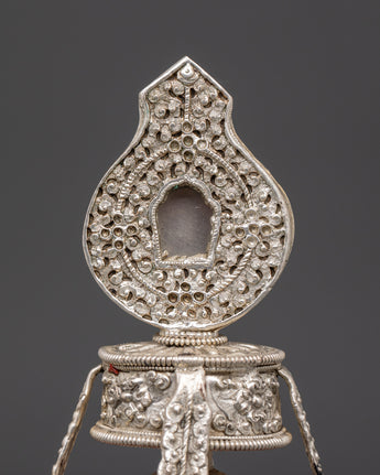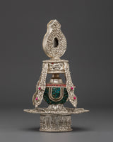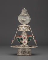 The Buddhist Ritual Long Life Vase, also known as the Tibetan Ayur Kalasha, is a sacred vessel symbolizing longevity, health, and prosperity. Used in Tibetan Buddhist rituals, it is believed to invoke the blessings of longevity deities like Amitayus and White Tara, who are revered for their power to protect and extend life. The vase is traditionally filled with sacred substances, such as herbs, grains, and mantras, channeling divine energy to promote well-being and vitality. It is a powerful tool in ceremonies to overcome obstacles and invite auspicious blessings. Whether placed on an altar or in meditation, the Long Life Vase represents a connection to spiritual vitality, offering protection and guiding one toward a balanced and harmonious life.