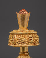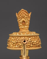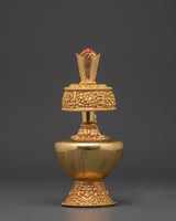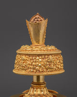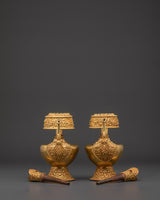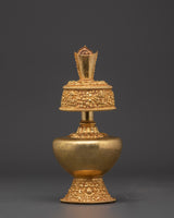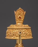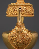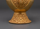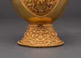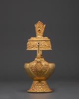 Each ritual bhumba is handcrafted from copper and finished with a dazzling layer of gold plating for both beauty and durability. The meticulous engravings and intricate crown patterns demonstrate the artisan's commitment to preserving sacred Buddhist iconography. This gold-plated copper bhumba set, whether used for pujas, offerings, or altar decor, strengthens your connection to peace, compassion, and spiritual cleansing. This real, significant, and highly symbolic bhumba set—a classic depiction of Tibetan Buddhist devotion and craftsmanship—will enrich your meditation practice and spiritual rites.