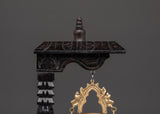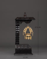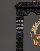 The Dhalucha, designed to store oil and a diya candle, is a crucial component of Hindu and Buddhist ceremonies throughout Nepal. The hanging arrangement allows the flame to flicker gently, representing the light of knowledge and divine presence. The delicately carved wooden base evokes the traditional Nepalese workmanship found in temples and cultural artifacts, while the brass leaves dangling from the lamp add elegance and gentle movement.