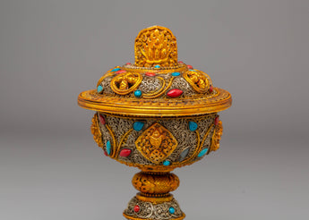 Ideal for creating an atmosphere of peace and mindfulness, the Electro Gold-Plated Butter Lamp Set offers more than just functional lighting; it is a profoundly symbolic object that represents devotion, spiritual purification, and enlightenment. Whether you are using it in daily rituals, special ceremonies, or simply as a beautiful decorative piece, this butter lamp set is a powerful and beautiful addition to any spiritual practice. The handcrafted nature of the lamps makes each one a unique treasure, imbued with both artistic beauty and sacred significance.