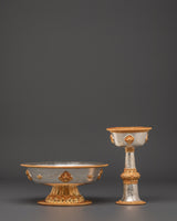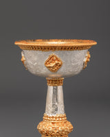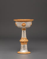 Expertly handcrafted from copper and richly plated with gold and silver, this Serkyem set radiates sacred energy and visual elegance. It measures 23cm in height and 21cm in width, weighing 0.92kg, and offers ceremonial presence on your altar. The set includes both the upper cup and lower bowl, designed to hold offerings of tea, wine, or other ritual liquids used during invocations and offerings to wrathful deities.