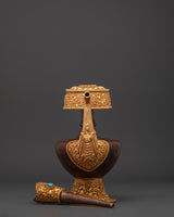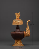 The Bhumba Vessel, crafted from a rich blend of copper and gold, is both a stunning piece and a sacred utensil used in spiritual rites. The gold plating lends a sense of elegance, while the copper body represents a connection to the earth. This Tibetan vessel, created with meticulous attention to detail, is ideal for individuals seeking to enhance their spiritual practices or add a significant decorative element to their homes.