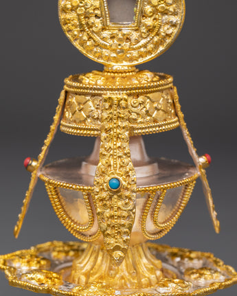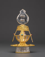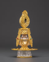 The Buddhist Ritual Long Life Vase, also known as the Tibetan Ayur Kalasha, is a sacred vessel symbolizing longevity, health, and prosperity. Used in Tibetan Buddhist rituals, it is believed to invoke the blessings of longevity deities like Amitayus and White Tara, who are revered for their power to protect and extend life. The vase is traditionally filled with sacred substances, such as herbs, grains, and mantras, channeling divine energy to promote well-being and vitality. It is a powerful tool in ceremonies to overcome obstacles and invite auspicious blessings. Whether placed on an altar or in meditation, the Long Life Vase represents a connection to spiritual vitality, offering protection and guiding one toward a balanced and harmonious life.