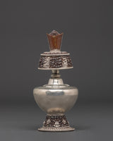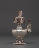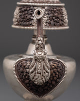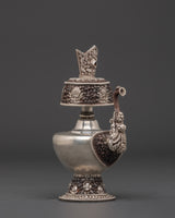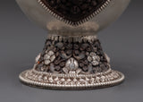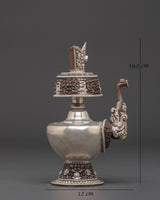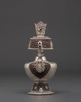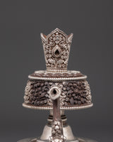 This silver-plated Himalayan ritual Bhumba set is ideal for Tibetan Buddhist practitioners, Vajrayana ritualists, and spiritual collectors. It is a potent tool for sacred empowerment ceremonies, altar arrangements, and ritual offerings. It is a meaningful gift or ceremonial object that combines tradition and intention, making it an essential complement to any Buddhist practice, meditation space, or temple altar.