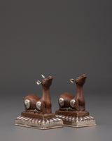 The Deer represents harmony, happiness, peace, and longevity in Buddhism. When a male and female Deer are shown together, it is a clear connection to Buddha's initial teachings near Varanasi. Buddha was a golden deer who communicated to men in one of his previous lifetimes. According to that tradition, deer are naturally modest and peaceful animals, and their presence in a location indicates the purity of a brave kingdom.