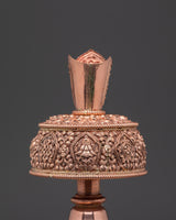 Traditionally filled with consecrated water, Bhumba vases are used by lamas and monks to bless practitioners, clear negative energy, and consecrate sacred spaces. Their elegant curves and hand-hammered finish embody both aesthetic beauty and profound spiritual significance. This copper Bhumba set is perfect for shrines, temples, empowerment rituals, and personal altar spaces, offering both spiritual utility beauty.