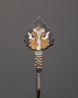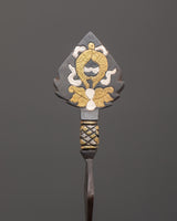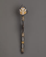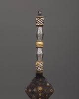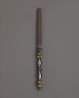 The Flat Daru, commonly viewed as a symbolic ceremonial blade, represents the act of cutting through illusion, ego, and ignorance, which is central to Buddhist teachings. This piece is used in empowerment rites (wangkur) to signify clarity and discernment. Together, the Rinzin Daru set serves as not only a functional component of holy practice but also a profound depiction of spiritual journey and development. Suitable for committed practitioners, ritual leaders, and collectors of genuine Vajrayana instruments.