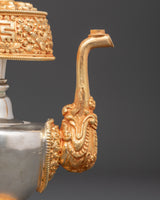 Water is essential in both Hindu and Buddhist rites, and it is always present on the altar, either in a pricey pot or in another container. Bhumba is a pot shaped like a flat jar, featuring a pipe to draw out the water, and is elaborately embellished with valuable stones and metal.