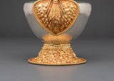The silver and gold plating on this Ritual Bhumba not only enhances its visual appeal but also deepens its spiritual significance, making it a powerful addition to your sacred space. Ideally suited for Tibetan altars or meditation areas, this vessel elevates your rituals by fostering a stronger connection to the divine. Its presence encourages positive energy flow and spiritual purification, helping you create a serene and focused environment for your practice. Crafted with care and reverence, this offering vessel is a vital tool for anyone seeking to deepen their spiritual journey and bring harmony into their daily rituals. This set of bhumba is best for offering.