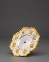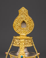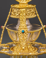This Tibetan ritual Life Vase is an essential piece for spiritual healers, collectors, and practitioners of the Himalayan tradition alike. The mix of copper craftsmanship, gold and silver plating, and precious stones makes it an excellent complement to ceremonies celebrating the regeneration of life force and spiritual well-being. Use this sacred spiritual vase to bring blessings of health, prosperity, and harmony into your home or meditation room. Add this handcrafted ritual vase to your collection and discover the ancient power of Tibetan craftsmanship.