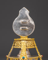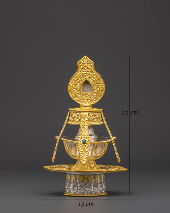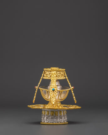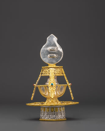 The Buddhist Ritual Long Life Vase, also known as the Tibetan Ayur Kalasha, is a sacred vessel symbolizing longevity, health, and prosperity. Used in Tibetan Buddhist rituals, it is believed to invoke the blessings of longevity deities like Amitayus and White Tara, who are revered for their power to protect and extend life. The vase is traditionally filled with sacred substances, such as herbs, grains, and mantras, to channel divine energy and promote well-being and vitality. It is a powerful tool in ceremonies to overcome obstacles and invite auspicious blessings. Whether placed on an altar or in meditation, the Long Life Vase represents a connection to spiritual vitality, offering protection and guiding one toward a balanced and harmonious life.