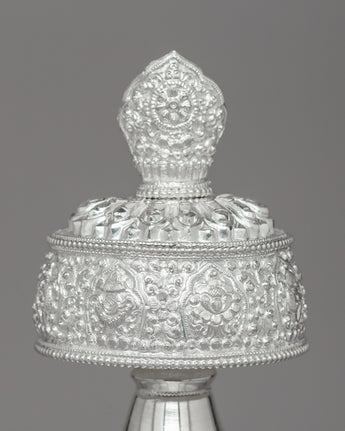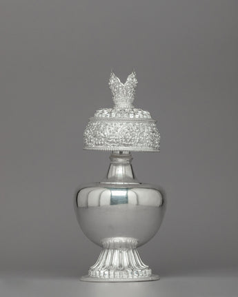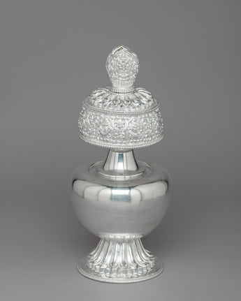 Silver Bhumba Ritual Vase | Handcrafted Tibetan Buddhist Artifact