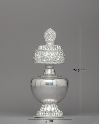 Silver Bhumba Ritual Vase - Handcrafted Tibetan Buddhist Artifact