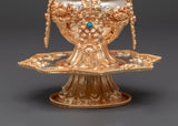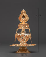 The Tibetan Ritual Long Life Vase, measuring 21.5 cm tall and 12.5 cm wide and weighing just 0.42 kg, is a beautifully handcrafted artifact that elevates any sacred or meditative space. Made from copper with elegant silver and gold plating, its intricate design is enhanced by vibrant turquoise and coral inlays, symbolizing vitality and protection. In Tibetan tradition, such vases are treasured for their spiritual significance, representing health, longevity, and the granting of blessings. Bringing this vase into your home invites positive energy and a lasting connection to ancient rituals that nurture well-being and peace.