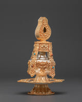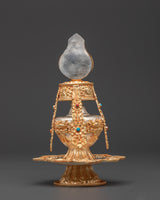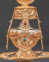 The Buddhist Ritual Long Life Vase, also known as the Tibetan Ayur Kalasha, is a sacred vessel symbolizing longevity, health, and prosperity. Used in Tibetan Buddhist rituals, it is believed to invoke the blessings of longevity deities like Amitayus and White Tara, who are revered for their power to protect and extend life. The vase is traditionally filled with sacred substances, such as herbs, grains, and mantras, channeling divine energy to promote well-being and vitality. It is a powerful tool in ceremonies to overcome obstacles and invite auspicious blessings. Whether placed on an altar or in meditation, the Long Life Vase represents a connection to spiritual vitality, offering protection and guiding one toward a balanced and harmonious life.