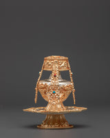 The Tibetan Ritual Long Life Vase is a masterful blend of artistry and spiritual symbolism rooted in Tibetan Buddhism. Crafted with care from copper and accented with gold and silver plating, this vase radiates elegance while embodying profound meaning. The carefully selected turquoise and coral gemstones represent protection and vitality, infusing the piece with powerful energy. Beyond its striking appearance, this vase serves as a sacred vessel for carrying blessings and amplifying the positive forces during rituals. Ideal for enhancing the spiritual atmosphere of your home or meditation space, it invites health, longevity, and harmony into your daily life.
